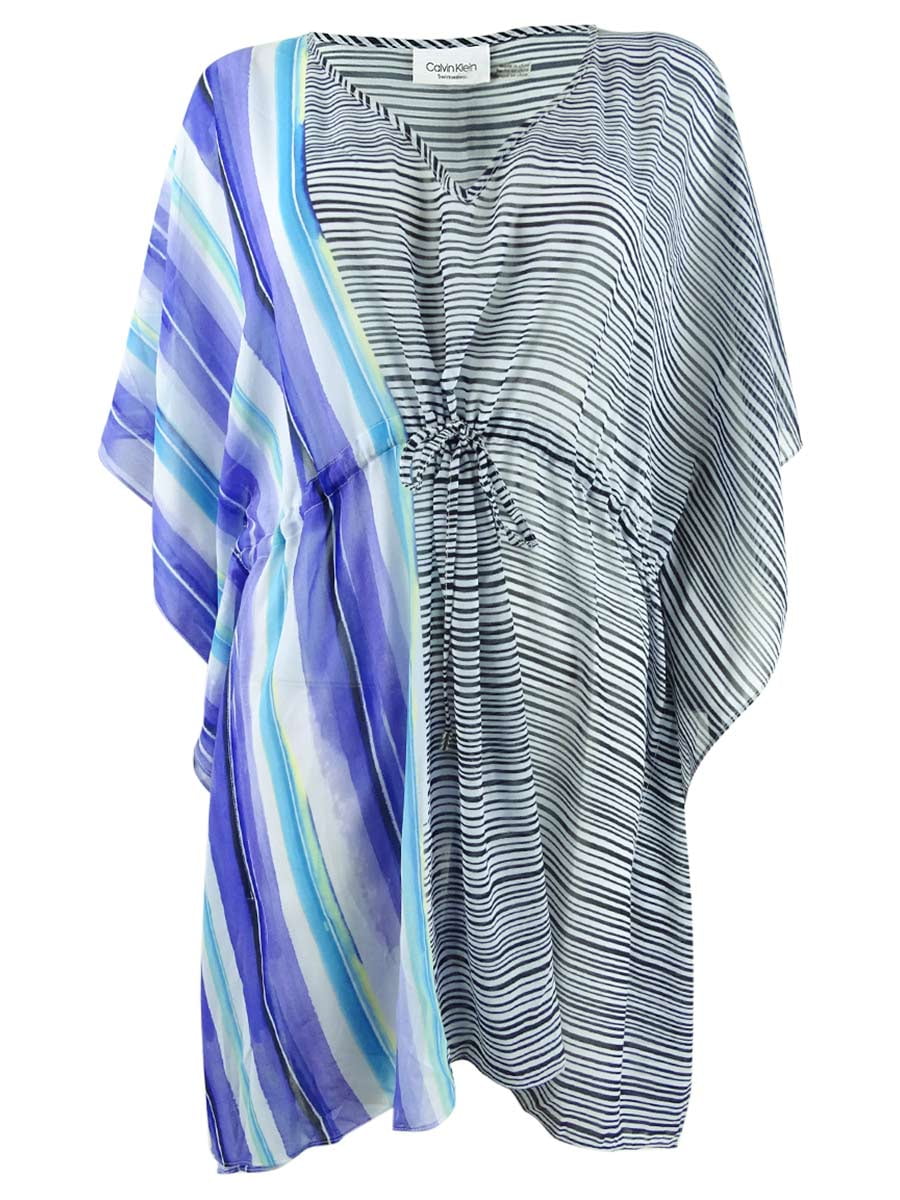 Calvin Klein Women S Striped Caftan Top Swim Cover Up L Xl Lilac Multi Walmart Com