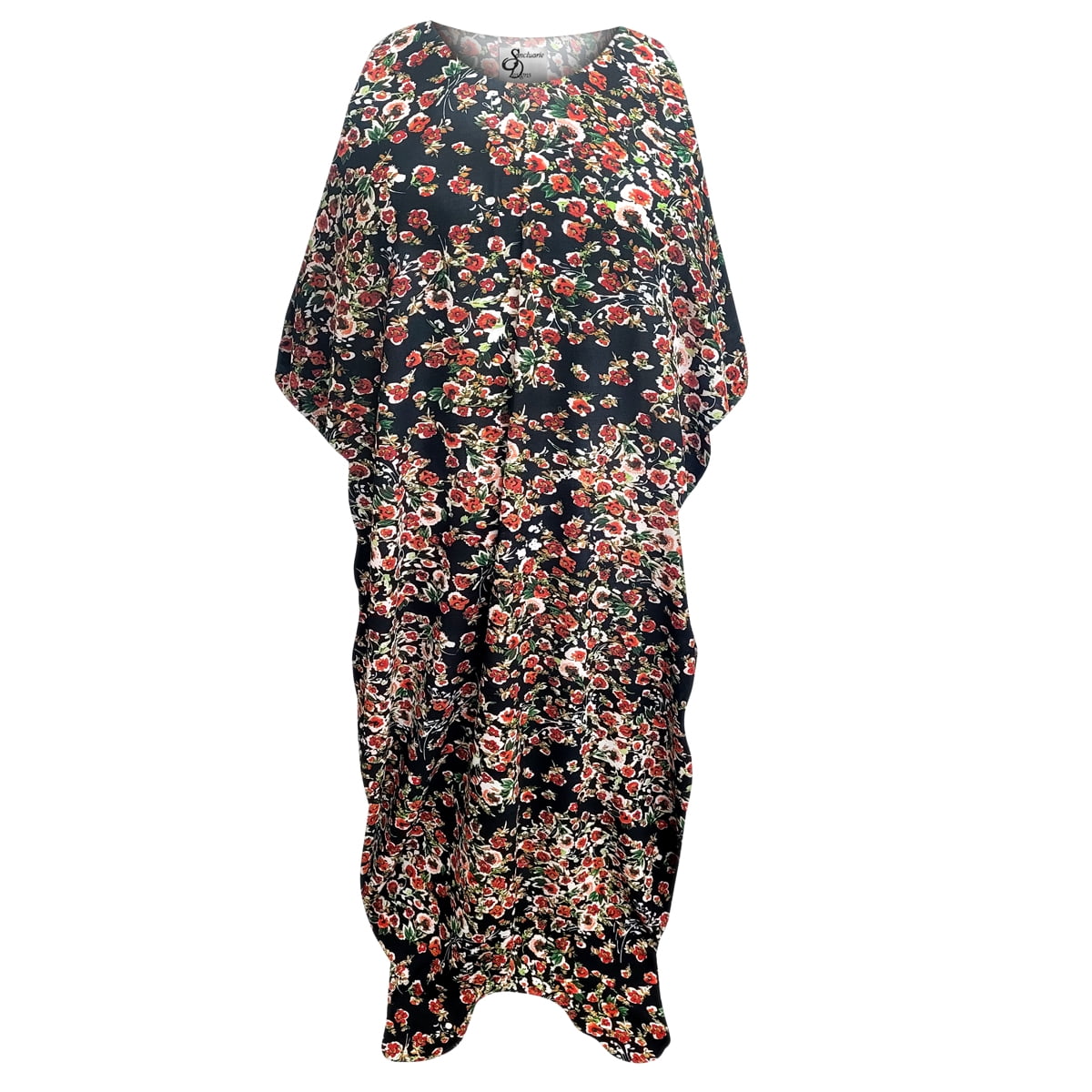 Plus Size 6x Womens Midnight Red Garden Designer Print Caftan Dress Walmart Com